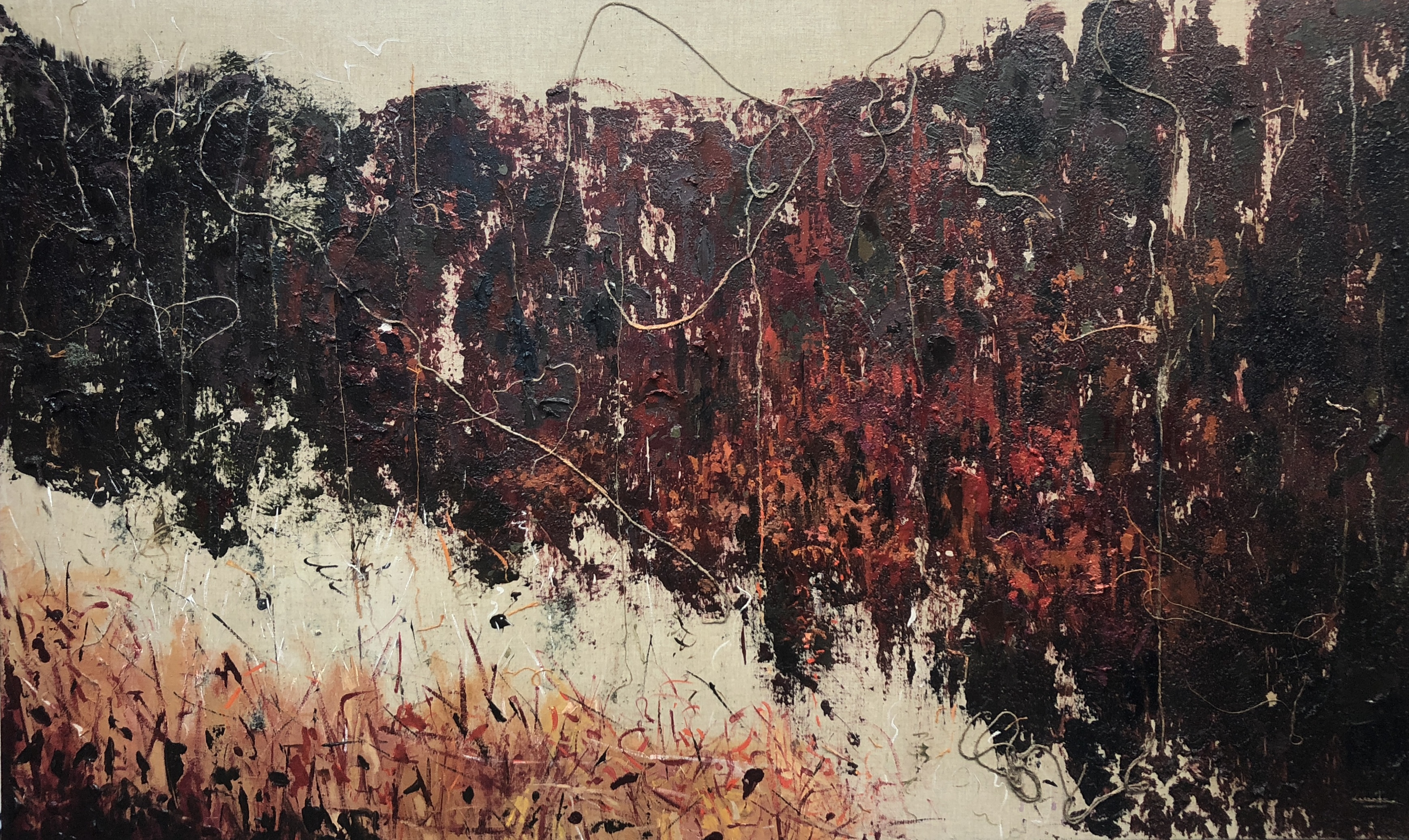 Técnica mixta sobre lienzo y lino. Cuerda y texturas de madera y bronce