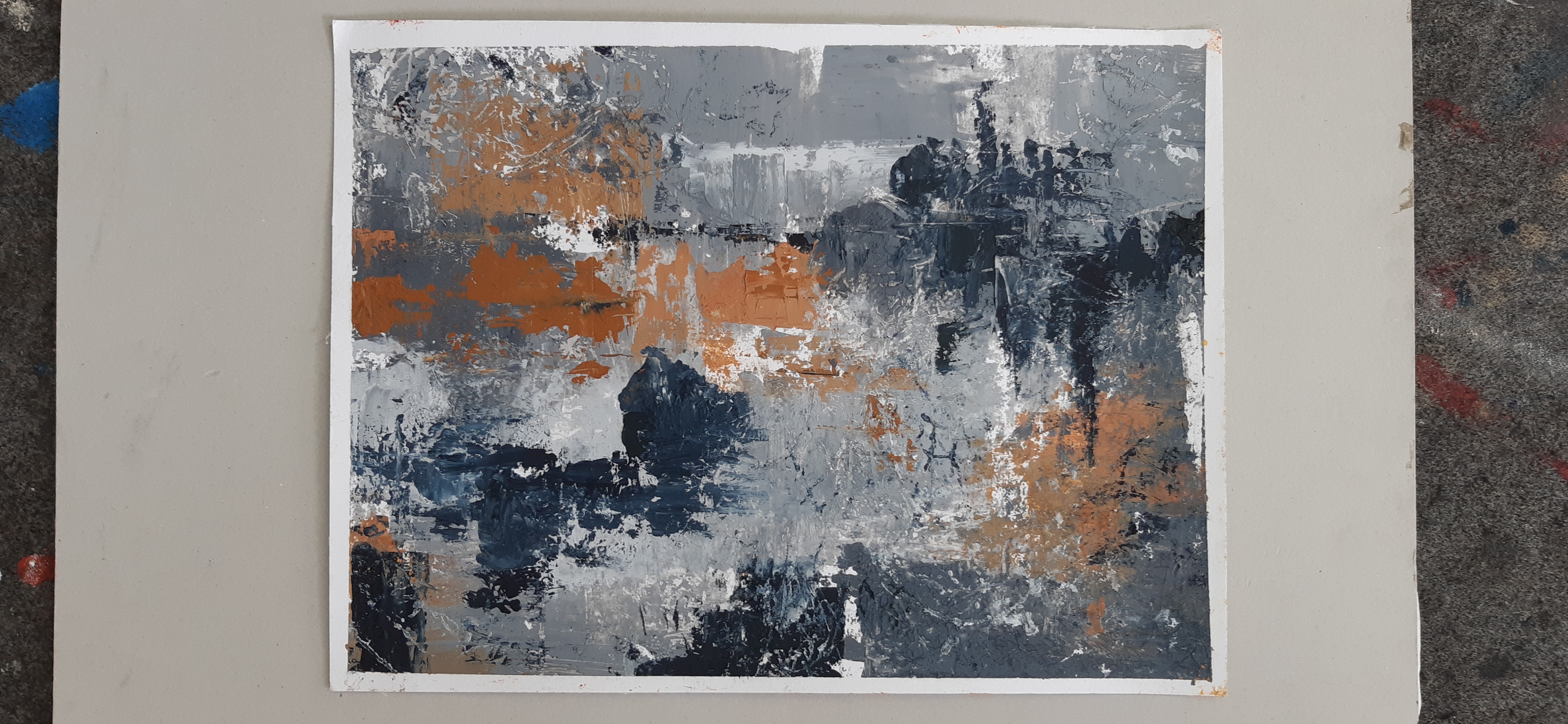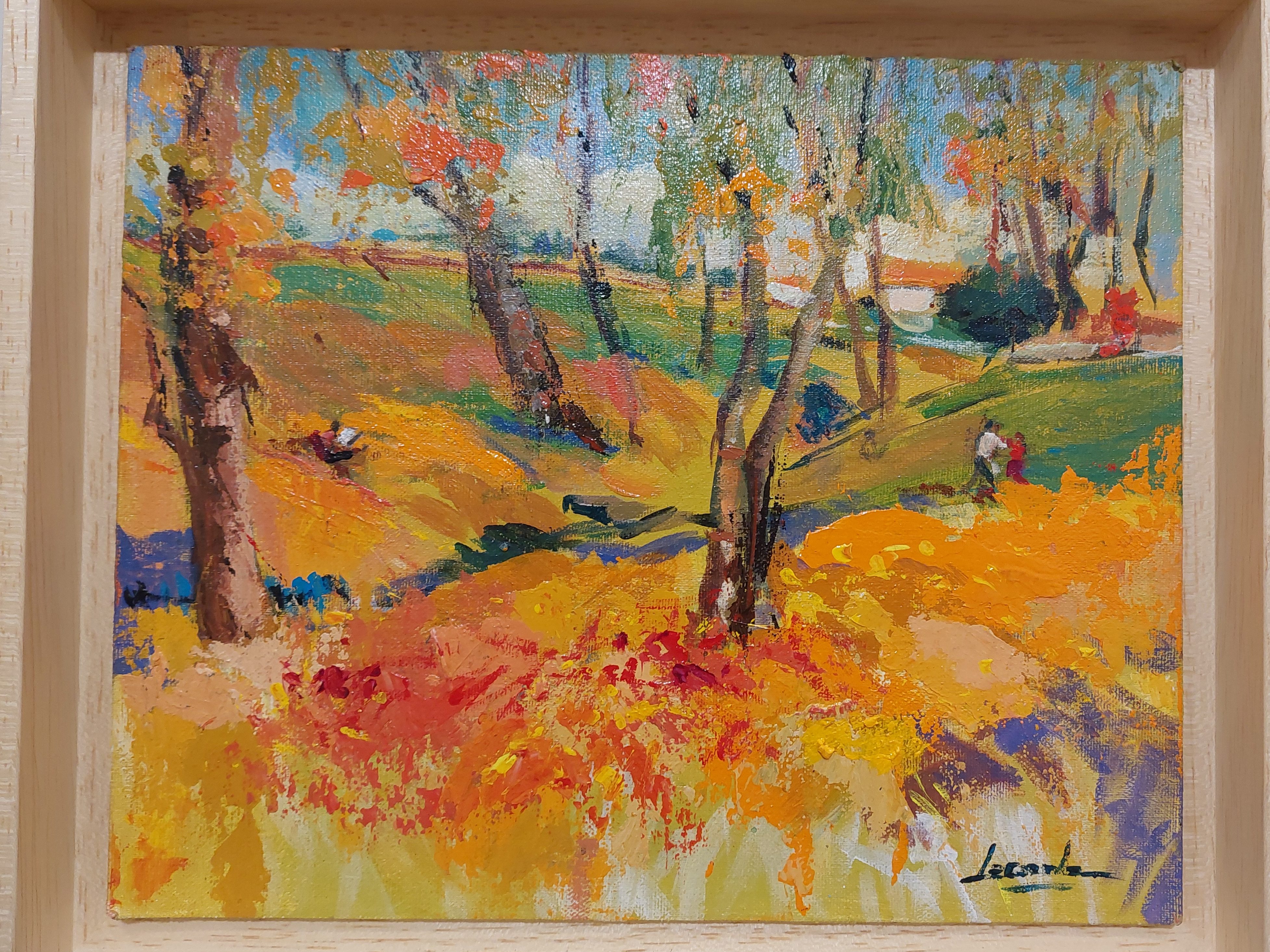 Entre mis obras de pequeño formato (hasta 35cm de ancho aprox.) existen tamaños apaisados y verticales, y hay una gran variedad de óleos y acuarelas que después transfiero al gran formato. Los materiales suelen ser cartón, madera o lienzo.
